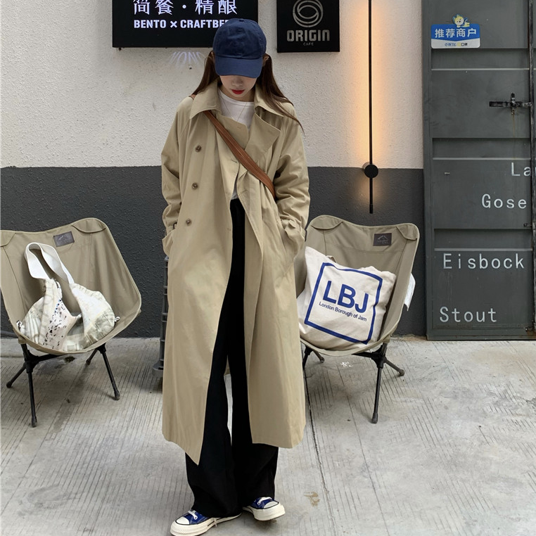 トレンチコート レディース 春秋 スプリングコート ロング丈トレンチコート カーキ 定番色 韓国風 ゆったり カジュアル アウター Aライン Lcoat012 Lizstore 通販 Yahoo ショッピング